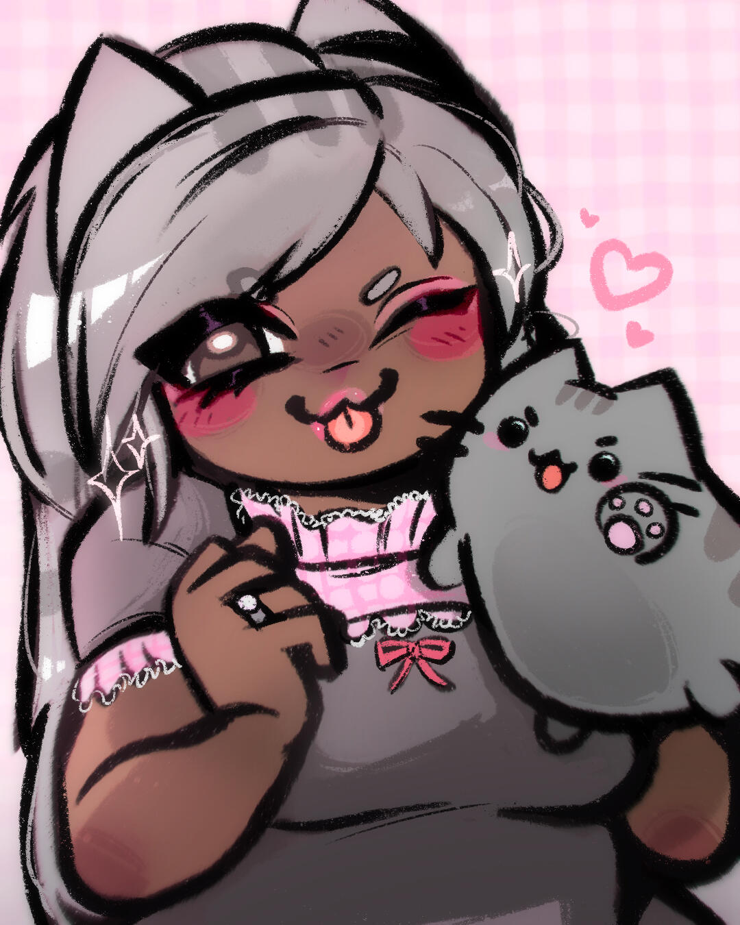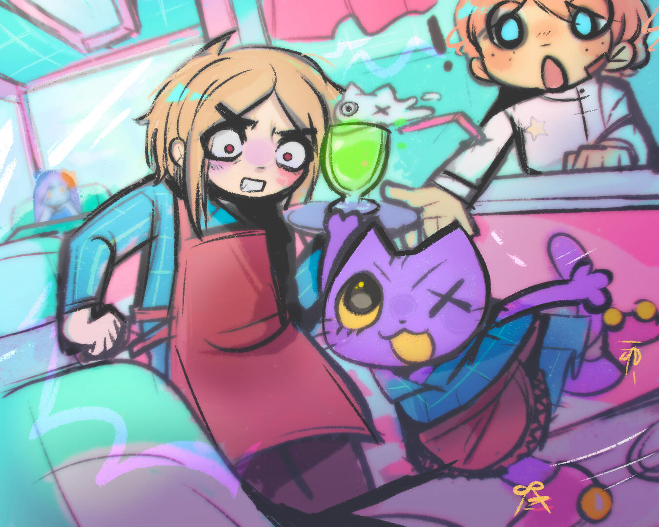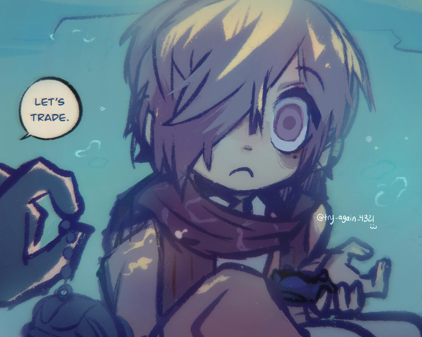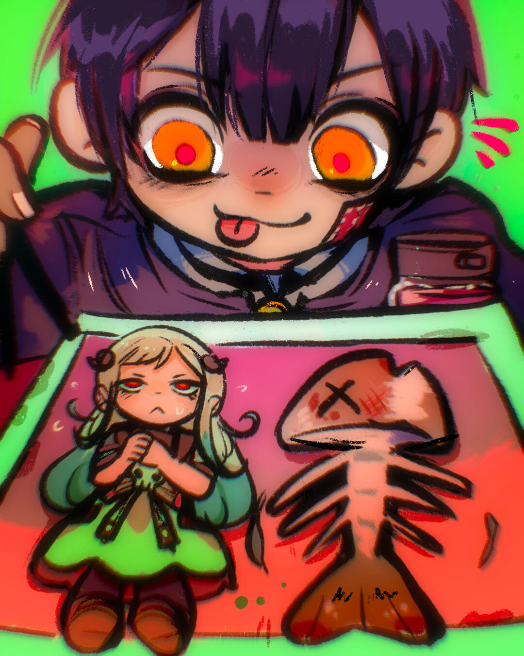 I like to draw my own characters and fanart! I focus a lot on emotions , tiles and water . Grunge and japanese fashions and subcultures inspire me a lot . One style I take a lot of inspiration from is yami kawaii , meaning “sickly cute” - i really like this style to express my mental health, so I feel my art is a good way to vent this out.